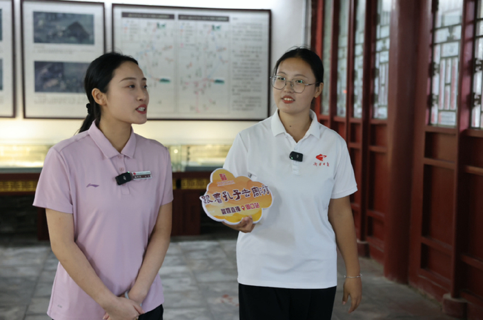 在直播中,我们跟随讲解员苏柯文一路走过了美富门、戟门、藏经楼,孔子困于陈蔡的往事被苏柯文娓娓道来。孔子受灾厄绝粮七日而色不改,依然击弦而歌的故事让弟子们钦佩,更让跨越数千年的我们景仰。