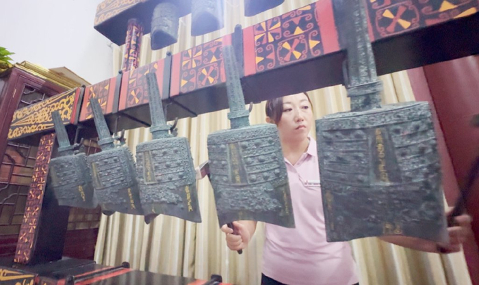 参观藏经楼时,东厢房编钟声起,景区奏响《东方红》,仿佛时空对话,彰显儒家文化根脉,激励我们承古启新,面向未来。