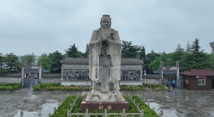这之后,我们去往广场,瞻仰孔子塑像,追忆孔子在弦歌台的坚韧之志。